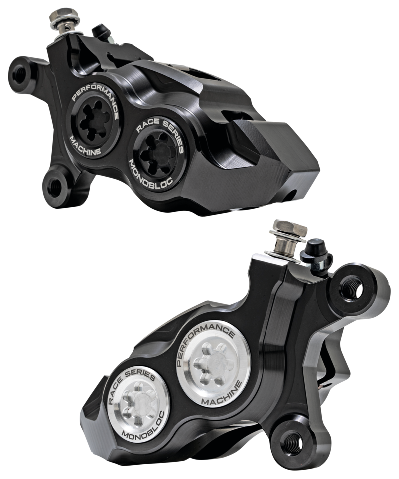 Born from a single piece of solid billet aluminum, the Race Series Monobloc Caliper cuts no corners in providing the very best stopping power for H-D motorcycles. Large diameter pistons combined with the extra rigidity of a monobloc design provide a staggering 20% increase in stopping power over OEM units. Going fast requires stopping fast, slow your ride down with the utmost precision from Performance Machine.