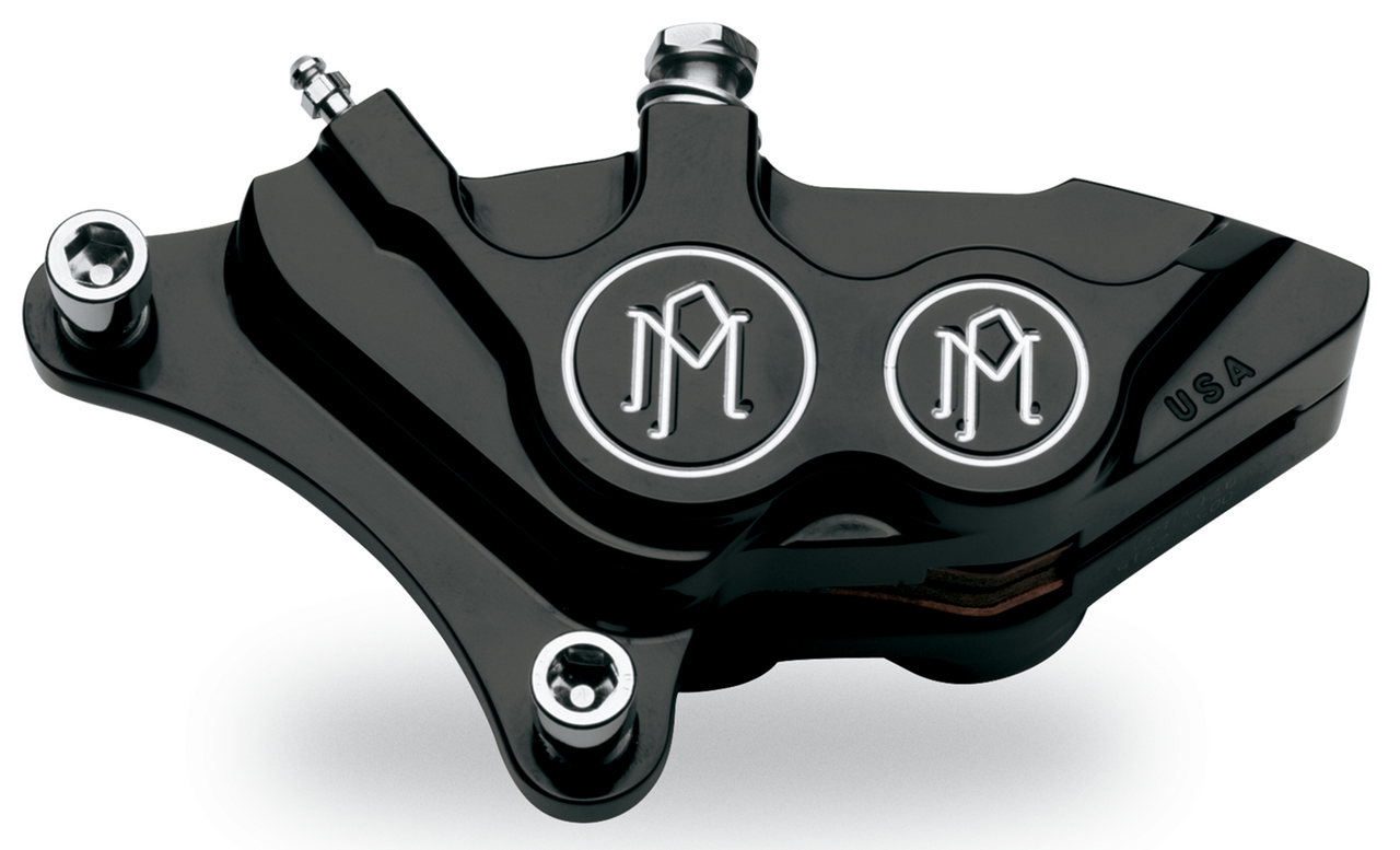 PM FINISHES Most PM calipers are available in polished, chrome and Black Contrast Cut. Polished Performance Machine has a reputation for supplying only the highest quality polishing on all of its components. Each polisher at PM takes pride in supplying a top quality finish to every product. The high luster finish is easy to maintain. Chrome Show chrome is what you get with every PM chrome product. The secret is in the preparation! Each raw part is polished to a mirror like finish before the chrome is even laid on! This process allows PM to create ultra smooth and durable chrome plated parts. Lustrous finish is easy to maintain with proper maintenance and care. Includes a two year warranty on chrome plating. Black Contrast Cut For those who prefer a more subtle look with less shine, PM offers most calipers in Black Contrast Cut. Much like PM’s chromed brakes, each raw part goes to their polishing department first, creating a mirror like finish before the anodizing is done! The result is an exceptionally smooth finish. After anodizing, the product is machined again to expose the raw aluminum of the PM logo.