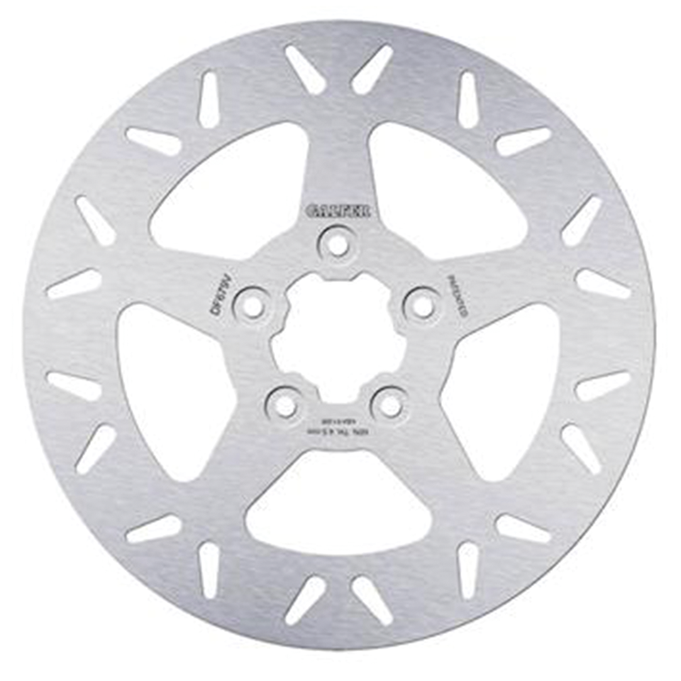 Fits front on all Sportster, Dyna, Softail, Touring & FXR 1984-1999 Disc has 11 1/2″ outer diameter, 2″ inner diameter and five 5/16″ counterbore mounting holes on a 3 1/4″ bolt circle, Round fixed disc