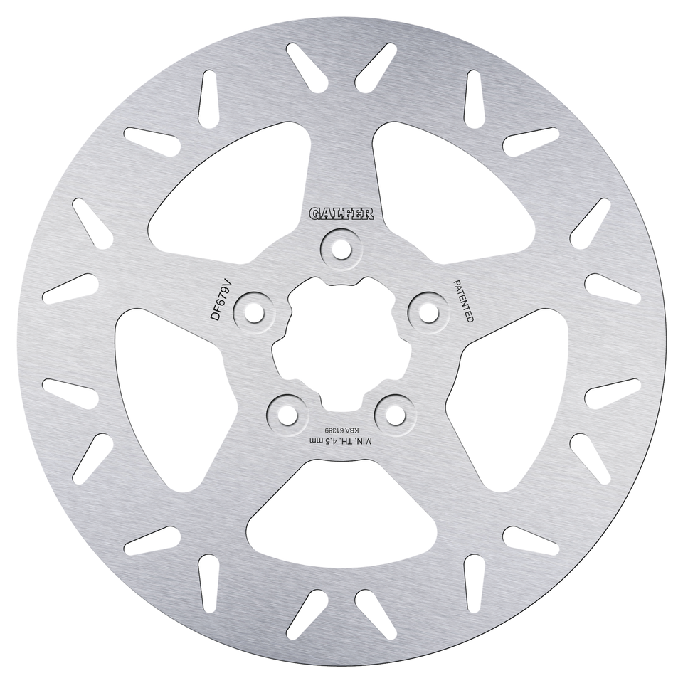 Fits front on all Sportster, Dyna, Softail, Touring & FXR 1984-1999 Disc has 11 1/2″ outer diameter, 2″ inner diameter and five 5/16″ counterbore mounting holes on a 3 1/4″ bolt circle, Round fixed disc, Galfer DF679 Round Solid 11.5″, Galfer Performance Brakes