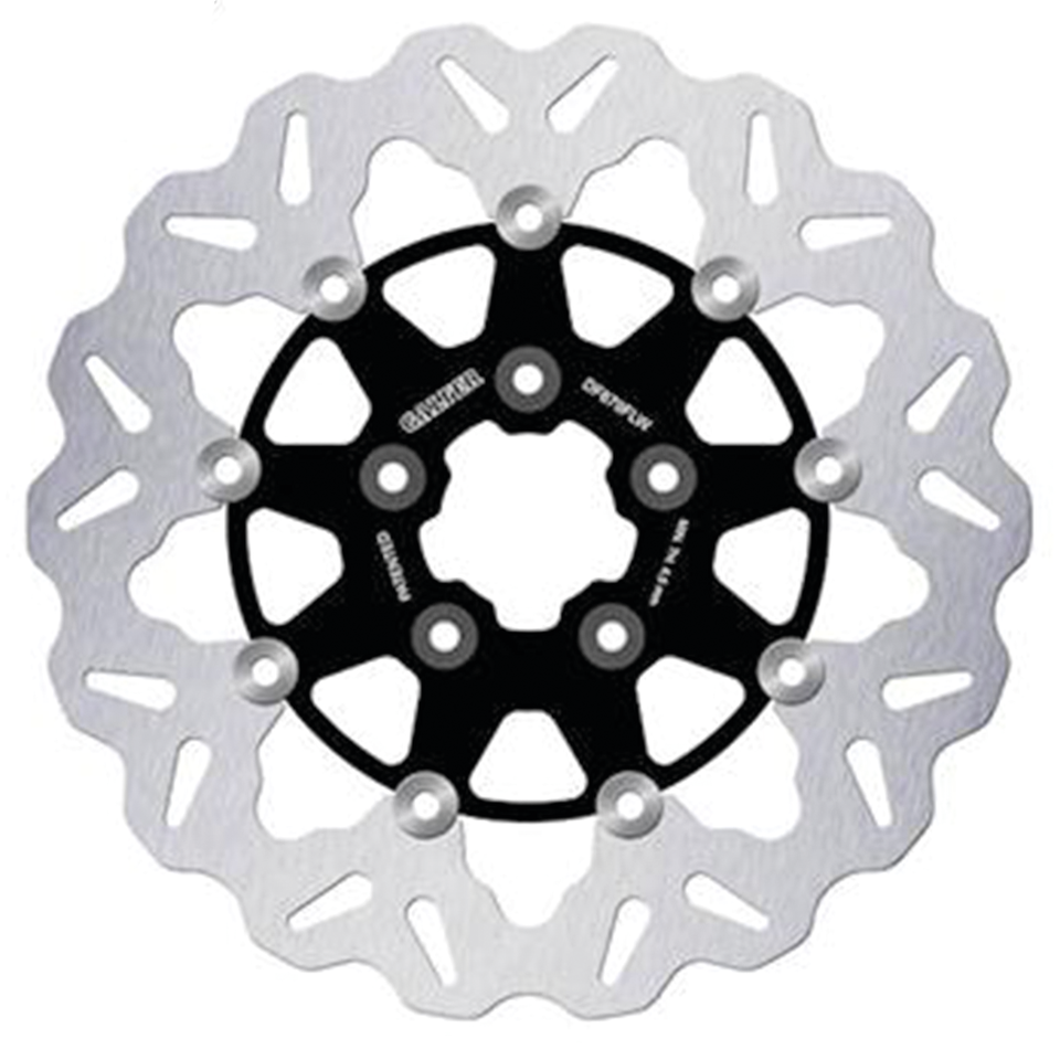 Fits front on all Sportster, Dyna, Softail, Touring & FXR 1984-1999Disc has 11 1/2″ (292mm) outer diameter, 2″ (50.8″) inner diameter and five 5/16″ counterbore mounting holes on a 3 1/4″ circle, Wave design full floating disc, Galfer DF679 Wave Floating 11.5″ Black, Galfer Performance Brakes