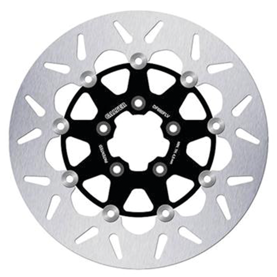 Galfer brake discs for use with stock and stock-replacement calipers. Full floating discs have stainless steel outer bands with black coated steel centers, held by and clear stainless floating elements. As with every brake disc it is strongly recommended to install new brake pads with a new brake disc.