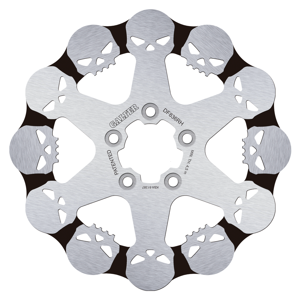 Fits rear on all Touring 2008 to presentDisc has 11.8″ (300mm) outer diameter, 2 7/32″ (56.4mm) inner diameter and five 7/16″ counterbore mounting holes, Rigid mount, Galfer Skull solid disc 11.8″ Rear, Galfer Performance Brakes