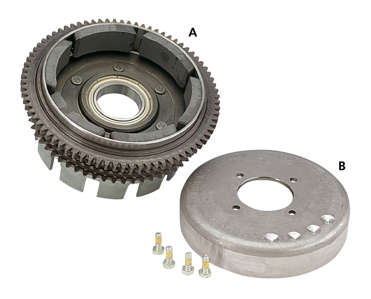 OEM type clutch shell & sprocket with alternator rotor, clutch sprocket and bearing, fits all Sportster 1984-1990 (OEM 36791-84), GHDP Alternator rotor kit XL84-90 #36791,