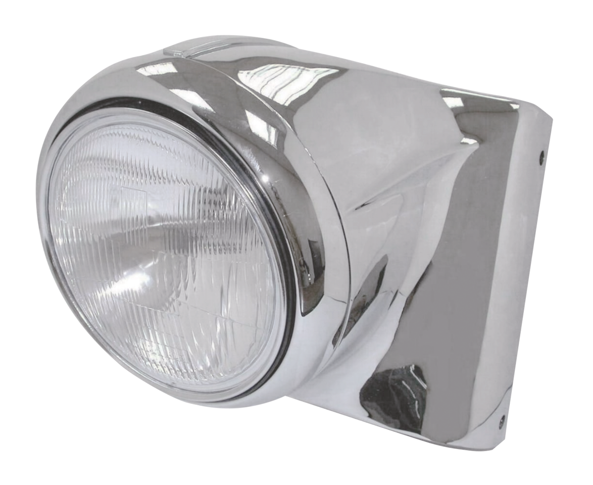 Chrome headlight housing conversion kit with hardware and DOT approved H4 unit