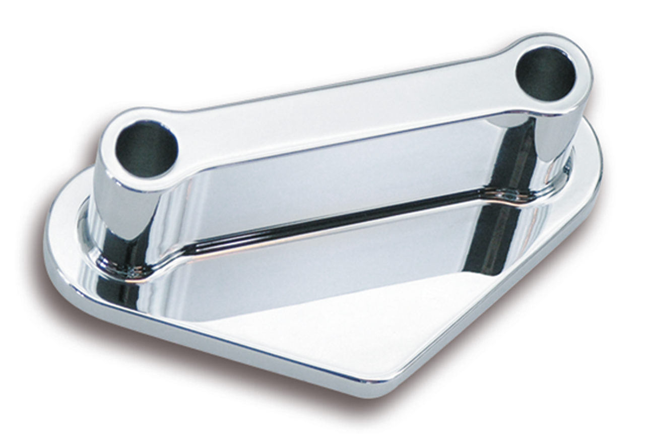 These chrome plated front fender spacers are machined out of solid billet aluminum. They allow fitment of a narrower than stock front fender in Wide Glide forks. Spacers feature 2 3/4″ center-center distance and are drilled to accept 5/16″ bolts. Sold in pairs.