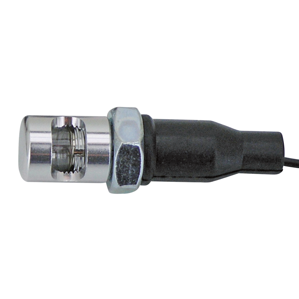 With a diameter of only 5/8″ (16mm) and a length of 3/4″ (19mm) these are the smallest license plate lights on the market. Precision CNC machined from Billet aluminum and mirror shine polished. Can also be used as a speedo or tacho light. Comes complete with 12 Volt 4 Watt bulb, wire, 1/2″ nut and rubber boot. Available in your choice of grooved or smooth finish.