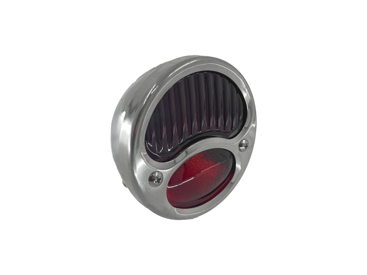 Classic style taillight with true Old School details like cork seals and real glass lenses. Light is 3 7/8″ (9.8 cm) in diameter, has a 2 3/8″ base with two-bolt construction and is 2 1/8″ (5.4 cm) deep. Housing and trim ring are stainless steel. Features one bulb for taillight and license plate illumination, and another bulb for brake light. Comes pre-wired.
