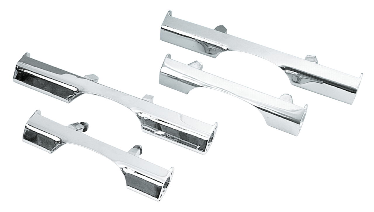 These turn signal mounting bars are available in shortened and stock replacement versions. The shortened bars are 4″ narrower than the OEM bars and make a significant change to the appearance of your motorcycle. These stamped steel bars are much stronger than the die-cast Original Equipment ones. The steel construction also provides a better base for the beautiful chrome plating.