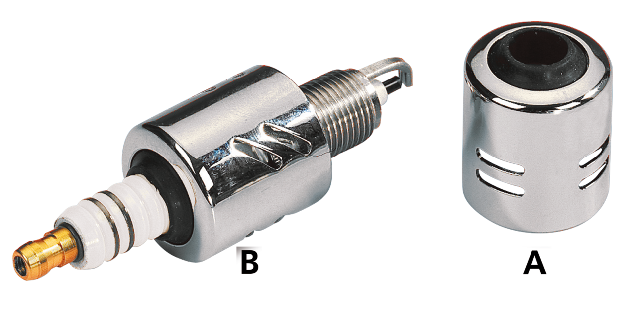 For those who want to make a chrome spark plug we have the answer. Simply slide these chrome covers over your spark plug and you have got the look of chrome. Covers are held in place by a black silicone rubber seal. Fits all 14mm spark plugs. Available with horizontal or side slots. Sold in pairs.