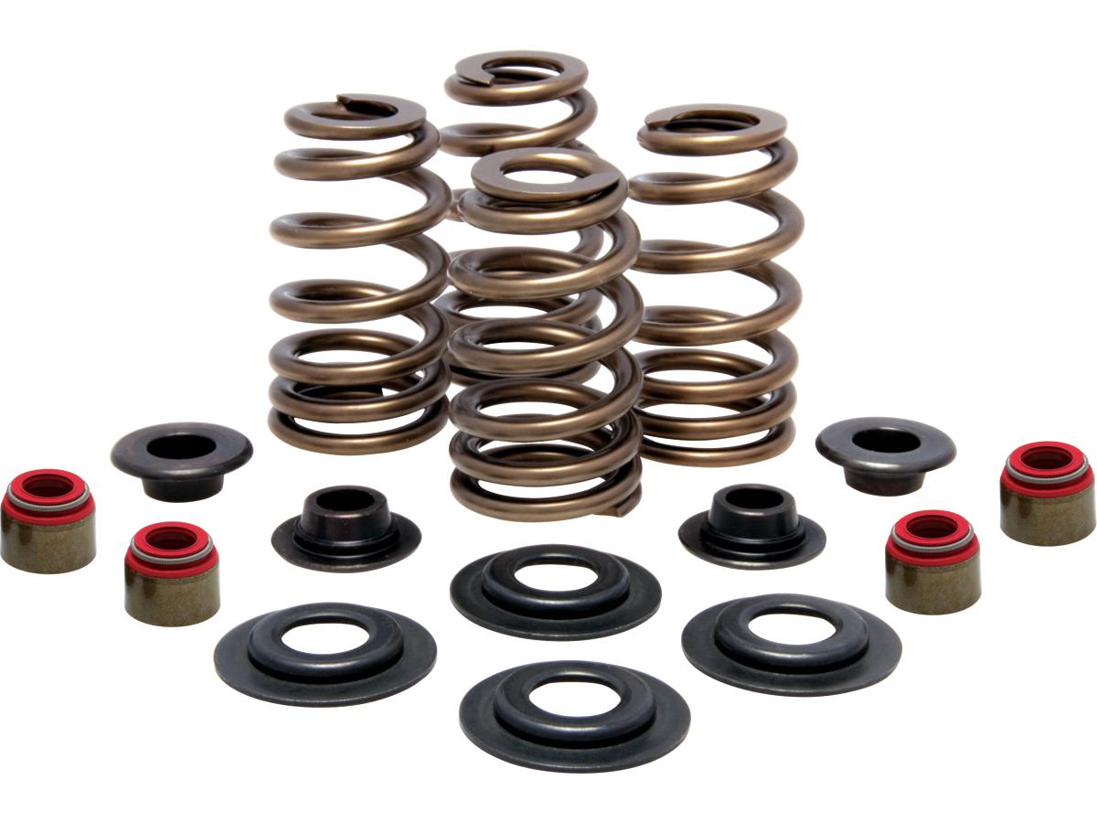 High Performance Beehive Valve Spring Kit Retainer Material: H.T. Steel; Valve Lift: 0.610″; Installed Height: 1.860″; Seat Pressure: 175#; Open Pressure: 400#; @ Lift: 0.610″, 04-20 Sportster, 05-17 Dyna, 05-17 Softail, 05-16 Touring, 09-16 Trike, 03-10 XB