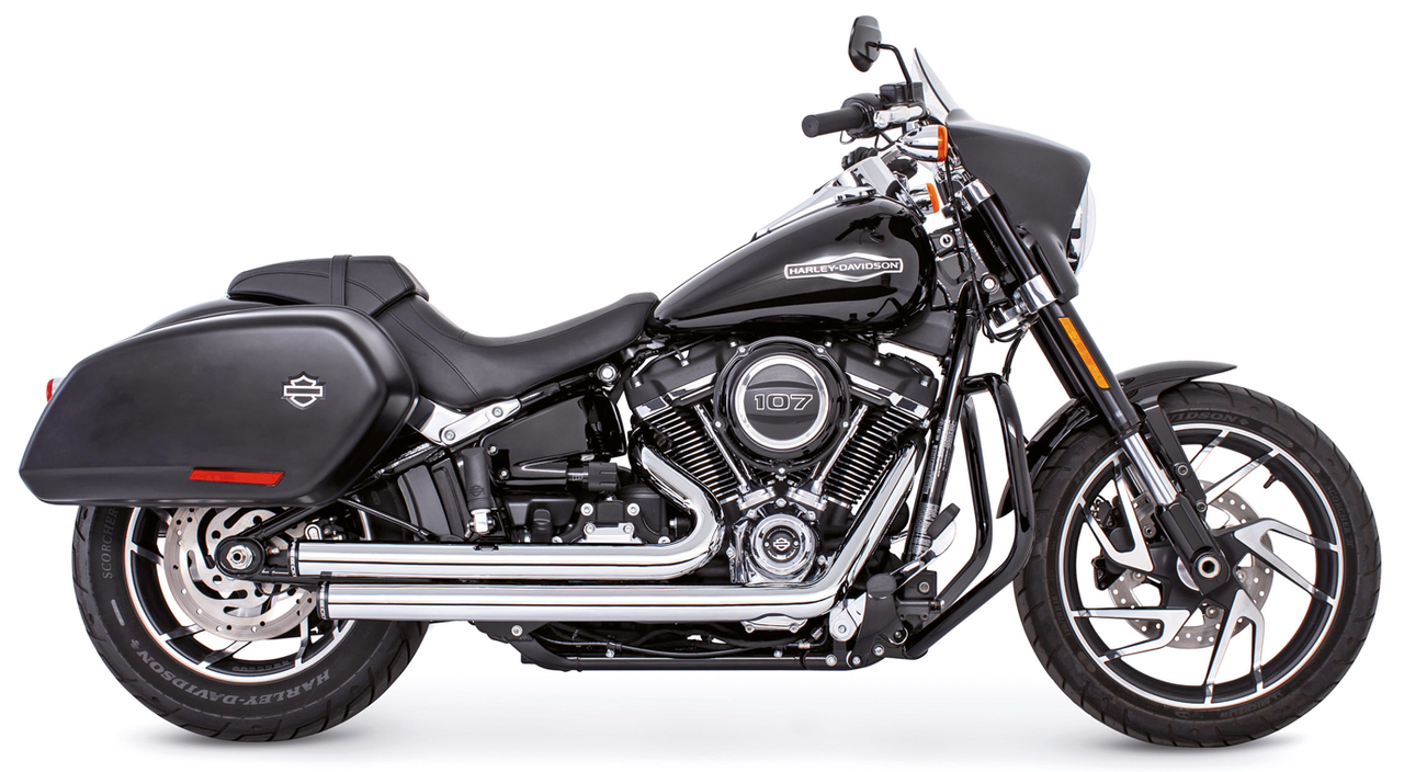 2018 to present SoftailRace versionRequires adapters when installed on FLHC & FLHCS Heritage, FLI Hydra-Glide Revival, FLSB Sport Glide and FXLRST Low Rider ST models with saddlebag supportsTo mount on FLFB & FLFBS Fat Boy, FXBR & FXBRS Breakout or FXDR(S) the passenger peg relocation kit must be ordered separately, Chrome with black sculpted tips, INDEP STAGGERED ST18-up Ch/Blk, Freedom Performance Exhaust
