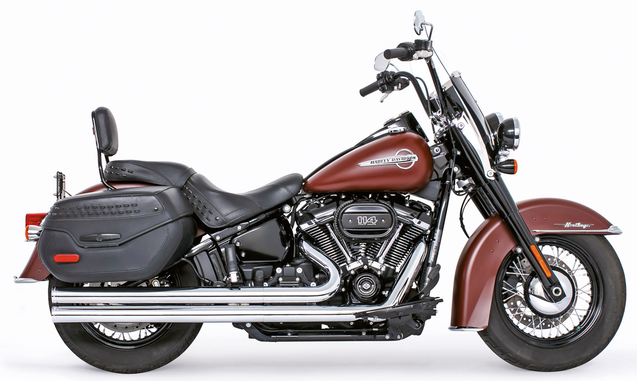 2018 to present SoftailRace versionRequires adapters when installed on FLHC & FLHCS Heritage, FLI Hydra-Glide Revival, FLSB Sport Glide and FXLRST Low Rider ST models with saddlebag supportsTo mount on FLFB & FLFBS Fat Boy, FXBR & FXBRS Breakout or FXDR(S) the passenger peg relocation kit must be ordered separately, Chrome with chrome tips