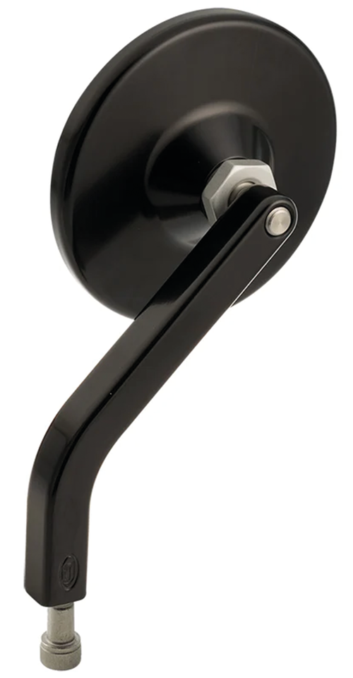 Solid, simple, adjustable mirrors that work and are direct bolt-on for Harley-Davidson’s. Mirror heads can be locked in place or adjustable and swivel on a corrosion free stainless steel ball joint that provides super smooth action and longevity. CNC machined from 6061 billet aluminum with a hard black anodize or chrome plated finish. Stems are threaded 5/16″-24 UNF, short are as long as stock Harley mirrors, long are 3″ (7.5cm) over stock length. Installation on Indian and most other metric motorcycles require the separate purchase of a mirror adapter.