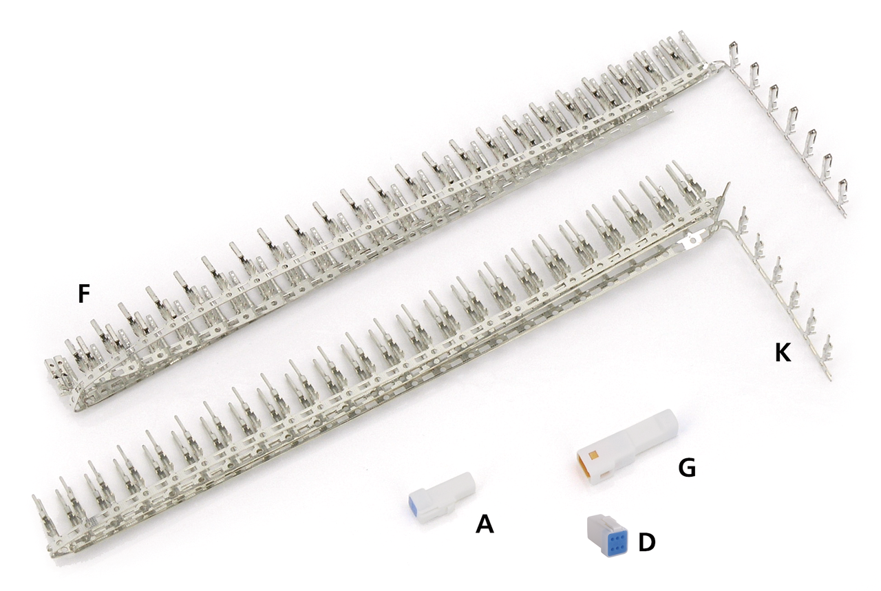 These are the connectors used by customizers. Very small and water tight. Connectors are sold each, terminal pins for female connectors and terminal pins for male connectors are sold in dealer packs containing 100 pieces. All connectors include necessary wire seal. JST connectors are designed for 22-gauge (0.33mm²) wire, 22-gauge wire is rated for a maximum of 5-Amps.