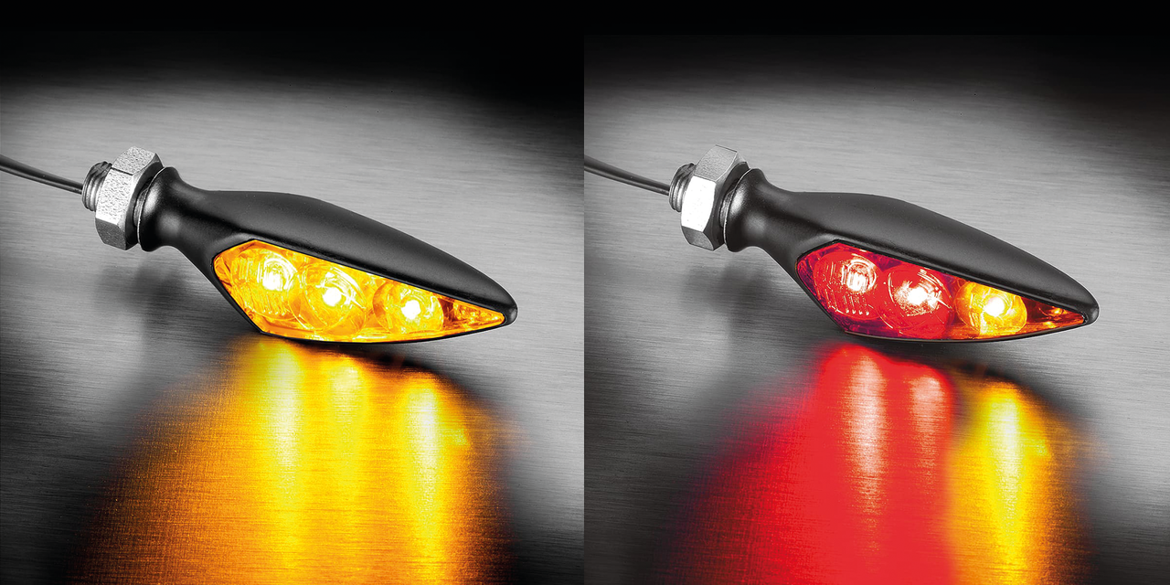 Rhombus turn signals are waterproof and feature LED lighting and a “Longlife-Protection-Guard-Electronics” circuit. Rhombus lights are EU approved for use on motorcycles for front and rear use. Rhombus Extreme lights are EU approved for use on quads, cars and trailers, as well as for motorcycles, even fitted in a distance of only 2cm from the head light! There is even a “Stealth” version with a black housing and the lens dark as the night but super bright when working. Installation of LED type turn signals requires -except for models with a CAN-Bus system-, the use of an electronic turn signal flasher unit such as the ZPN 237304 or two Kellermann in-line resistors ZPN 742046 to retain the original flashing sequence. Resistors as well as turn signals are sold each.