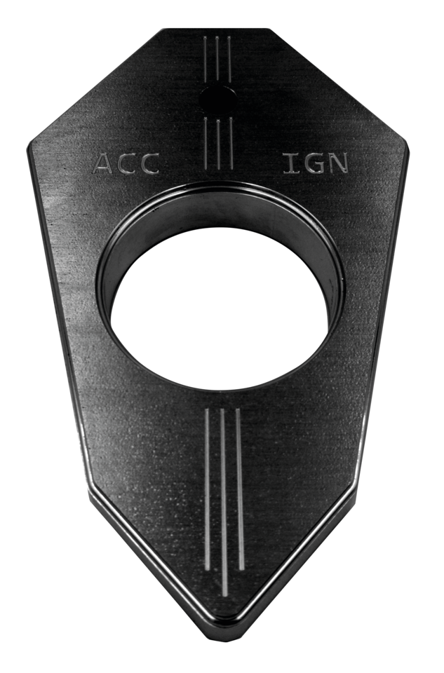 Black anodized billet aluminum bracket to mount a 1996 or later style Harley 3-post ignition switch like OEM 71501-93, 71313-96 or 71517-11.