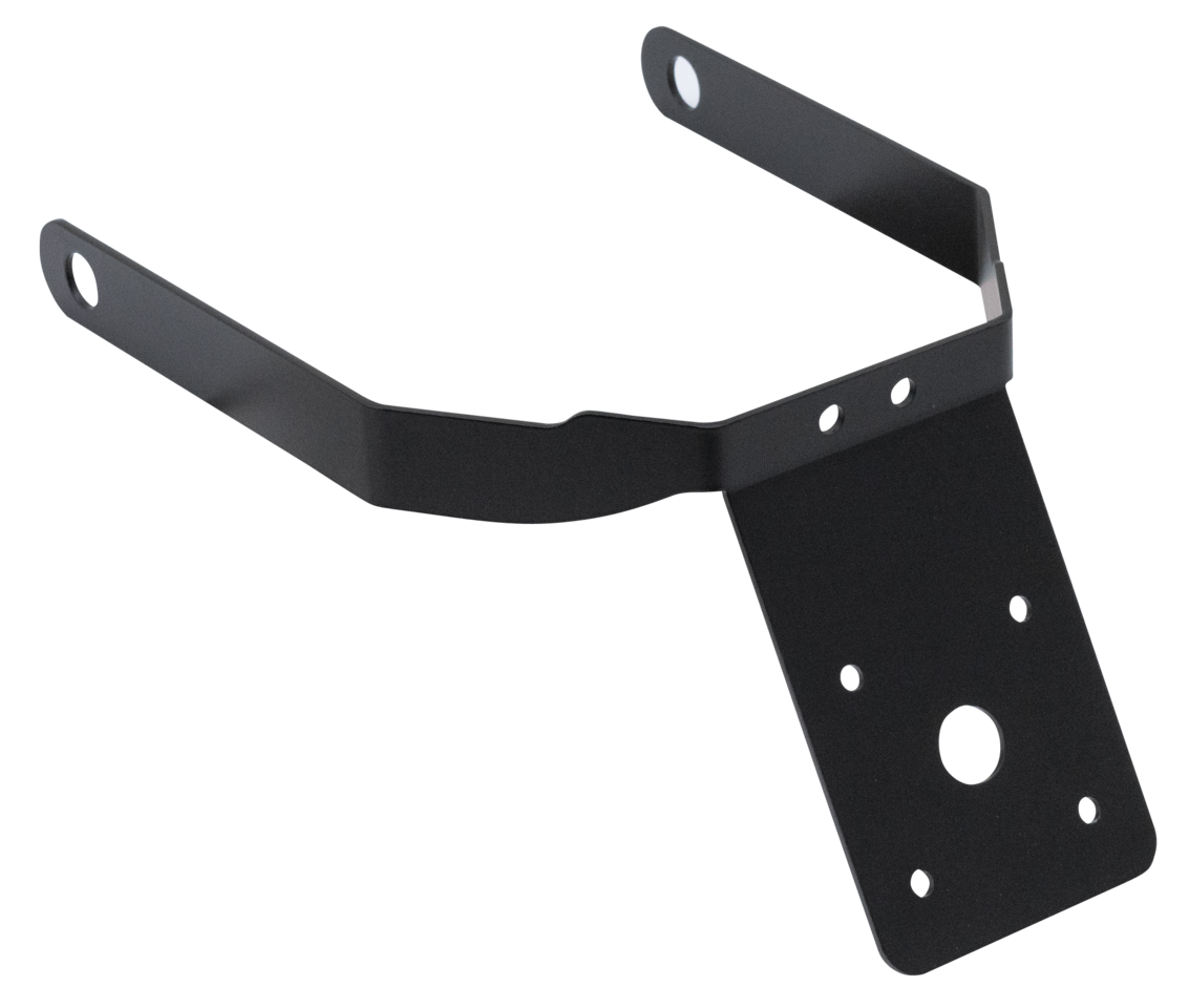 Powder coated steel plate brackets to fit the license plate directly below the rear fender. Most models will bolt together with the fender struts for optimal strength.