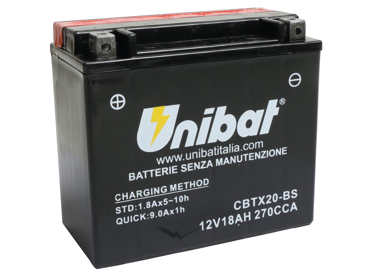 Unibat, Maintance Free Series CBTX20-BS Battery Dry Battery with Acid Pack AGM, 270 A, 18.0 Ah, 79-96 Sportster, 71-84 FX Shovel, 85-94 FX Model, 84-90 Softail, 97-98 S1