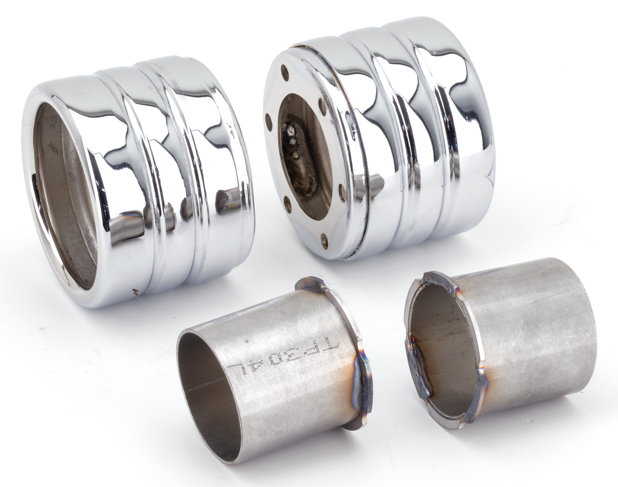 MCJ End Caps Race 90 Striped Chrome, MCJ End Caps Race 90 Striped Chrome, MCJ
