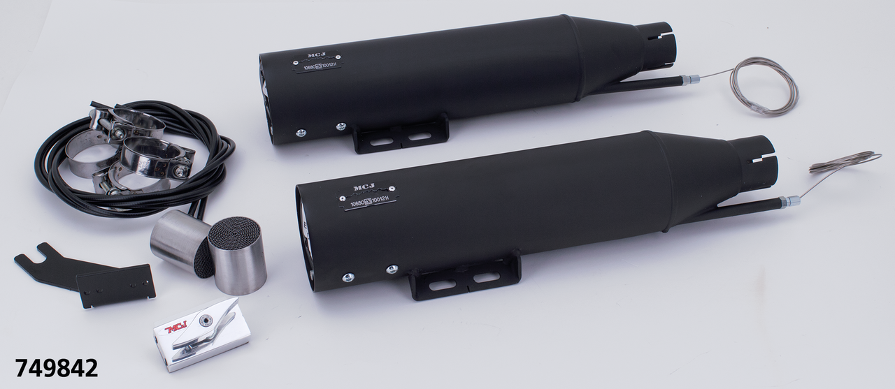 FLDE Deluxe and FLHC & FLHCS Heritage Classic; US Domestic models (VIN 1HD1…. ) 2018-2024, European models (VIN 5HD1…. ) 2018-2020Order end caps separately, Slip-on mufflers without end caps, Royal 90 black, MCJ Royal Slip-Ons FLHC/FLDE18-20 Black, MCJ