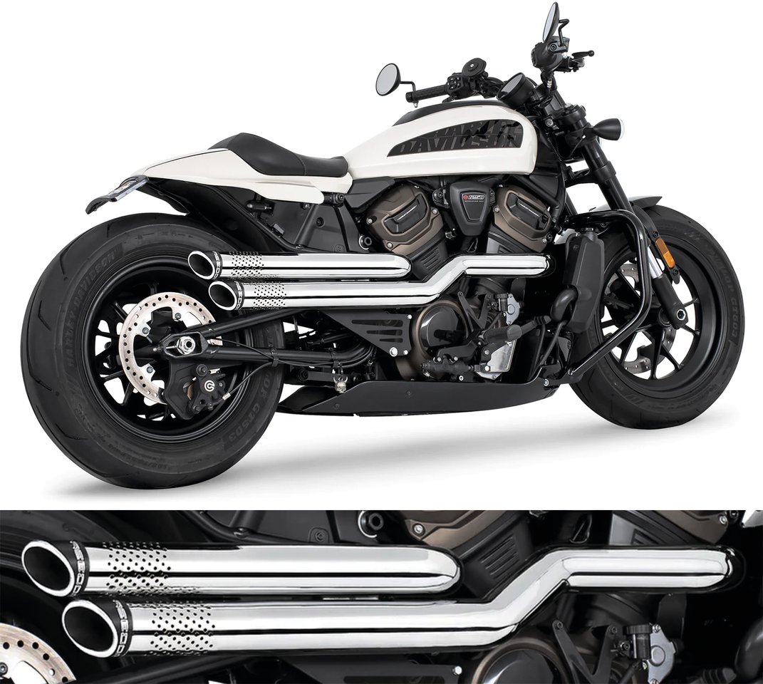 Fits Sportster S RH1250S 2021 to present, Chrome system with sculpted black Slash Cut end caps