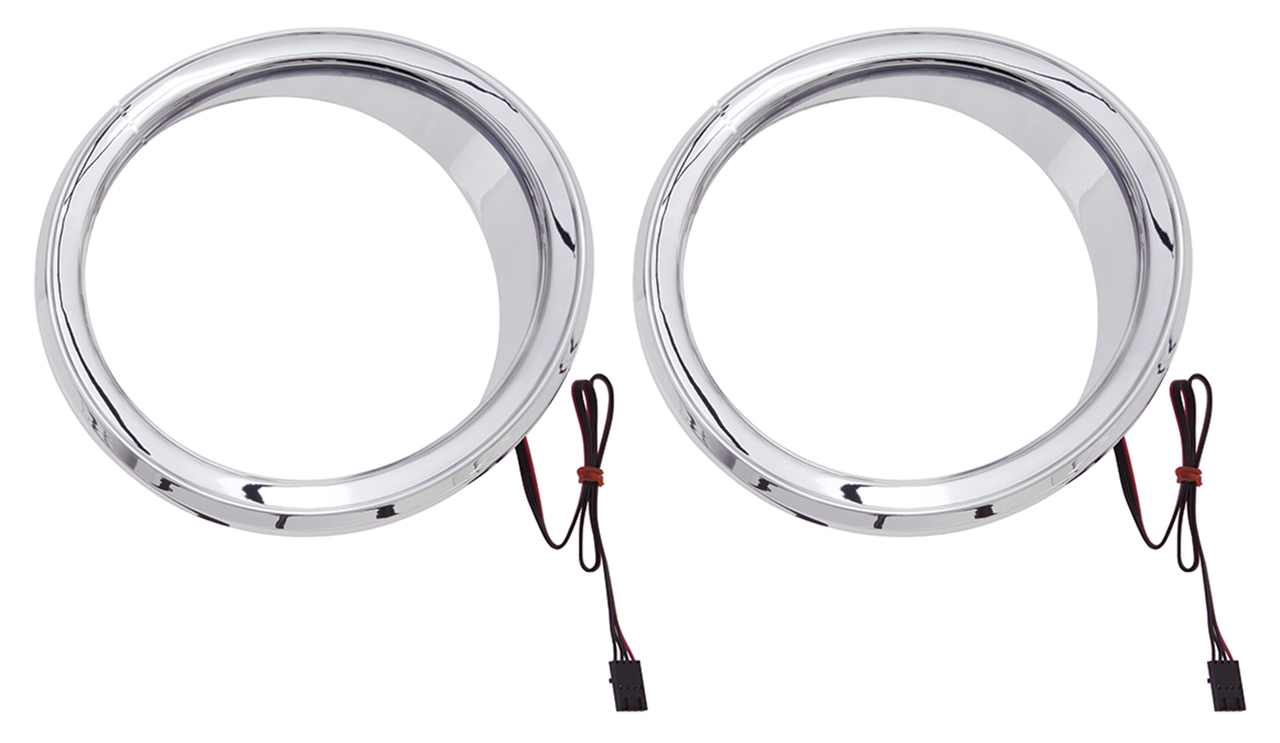 These chrome speaker accents with multi-color LEDs give you an unlimited number of color options when used with Ciro Shock & Awe LED manual or Bluetooth controller. All Ciro chrome fairing accessories can be wired together to get the same colors. If used with the Bluetooth controller you can have the fairing accessories on one channel and your bike LEDs on another channel, giving you millions of options for color, brightness and functions. Fits the stock fairing mounted speakers on 2014-2023 Touring and Trike (except 2023 CVO). Do not fit Stage 2 Boom Audio fairing speakers. Sold in pairs.
