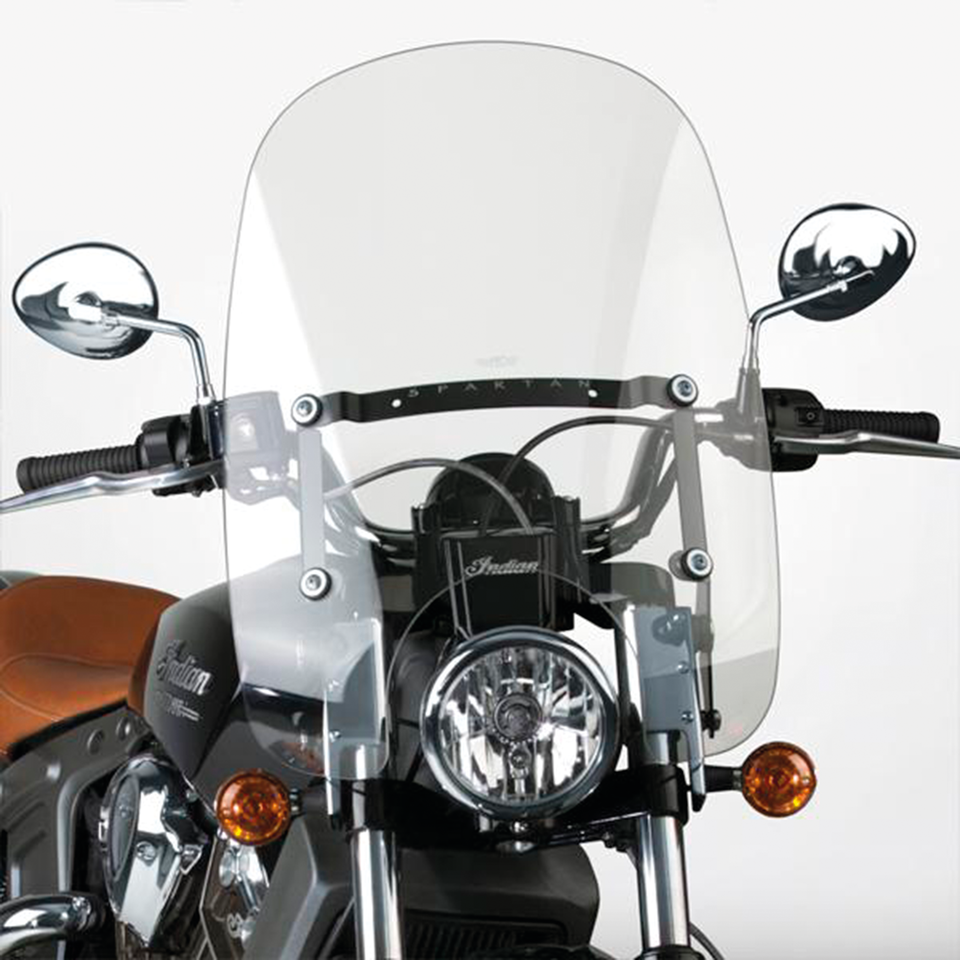 Fits 41mm front forks on all 2015 to present Indian Scout, Clear Spartan windshield only, 18.5″ (47cm) high