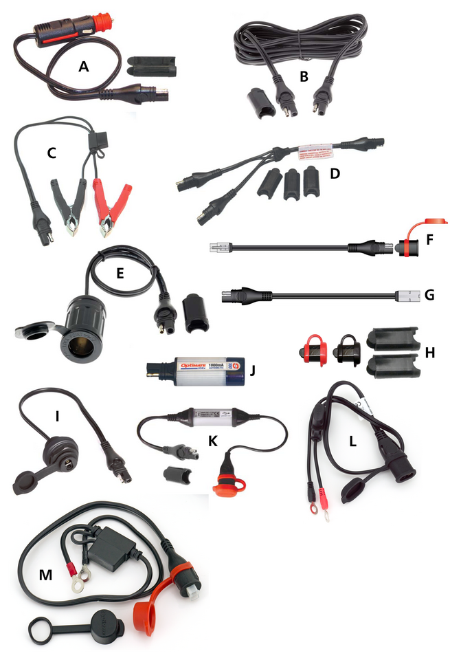 These connectors plug straight into the charger quick-connect cable ZPN743288, cigarette lighter plug or socket, or older battery chargers.