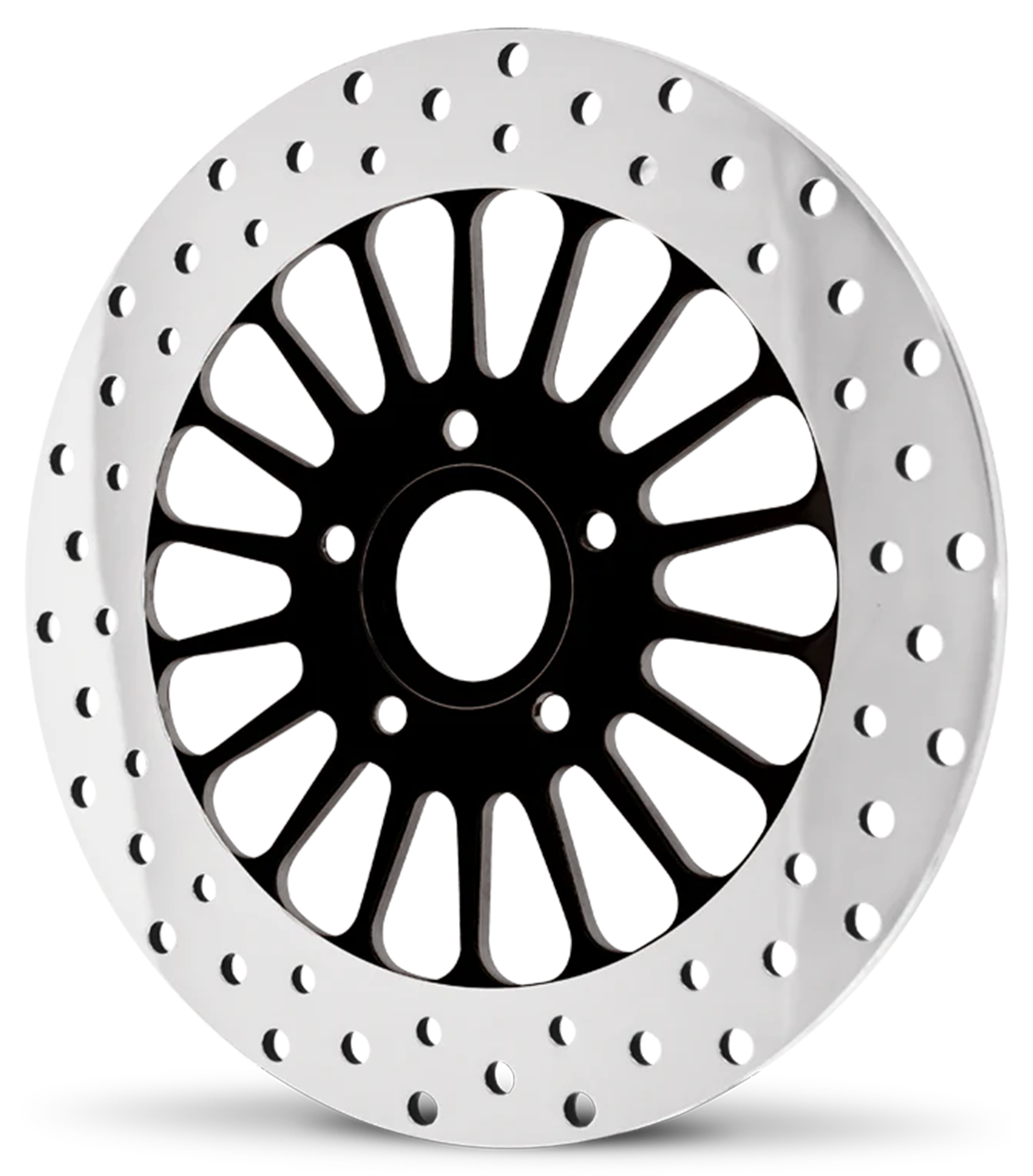 These polished stainless steel disc brake rotors have a design that compliments perfectly with our Mammoth fat spoke wheels.
