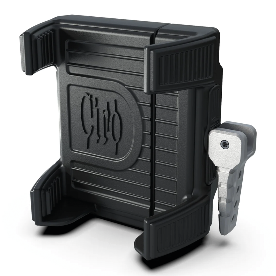 These accessories allows you to mount your phone or camera to any Ciro ball stud. Has bolt patterns and stud mounts for most common phone and camera mounts. When you do not want to worry about draining your phone battery while riding again, we suggest the Ciro Premium Smartphone mount with its built in 1.3 amp USB plug, so you can charge as you ride using the USB cable from your device. The CyberCharger is best for you when you have a Smartphone that supports wireless charging. Mk II CyberChargers feature a slim arm design that allows additional clearance for the buttons on certain models of smartphones. An upgrade kit to change a Mk I into Mk II is also available. The Budget and Premium holders fit devices from 2 1/8″ to 3 1/2″ (54 to 89mm) wide, the CyberCharger takes devices from 2 3/8″ to 4″ (60 to 102mm) wide. For action cameras we have a specific adapter available.