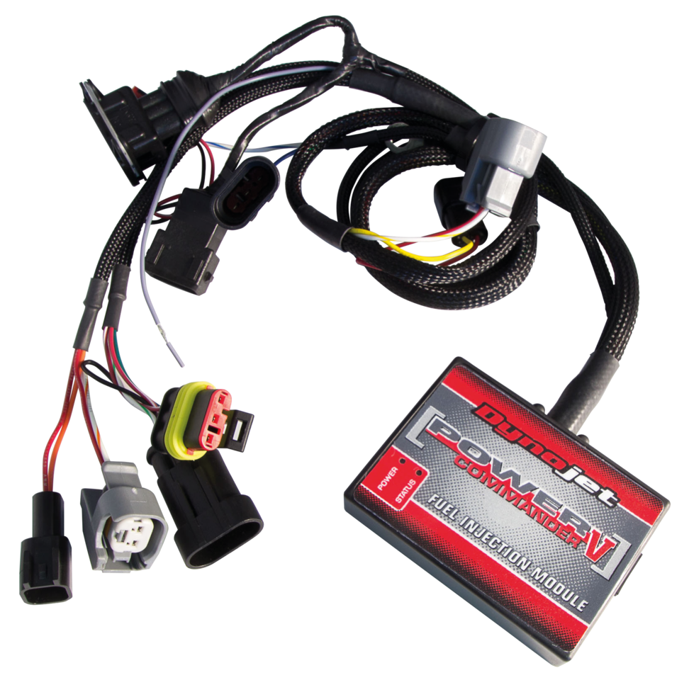 The Power Commander 5 tuner optimizes your ride anywhere you’ll roam. This sleek module seamlessly optimizes your air/fuel ratio without directly changing the ECU, making it effortless to push it to the max. Easily uninstall to revert back to factory default settings. Power Commander 5 takes the guesswork out of pairing efficiency with performance, keeping your focus where it belongs — on the journey ahead. The Power Commander 5 has a fuel change range of -100/+250%, giving you the best mix of performance and fuel efficiency at all times. This fuel tuner holds two maps at a time for multiple drive options when youn install an accessory switch, as well as 10 throttle position columns, so you won’t sacrifice comfort for performance. Featuring a plug-and-play kit, Power Commander 5 can be installed discreetly underneath your seat, ensuring your ride looks as good as it runs. The separately available Auto-Tune includes control boxes, two M18x1.5 Wide Band O2 sensors, and weld-in sensor bungs required for models with three-wire type pre-heated O2 sensors or that do not have O2 sensor bungs at all. Plugs directly into the PC5 and allows automatic fuel adjustments while riding. It can map each cylinder separately for each gear if needed (basic settings would make one map for all gears). Each map cell is individually adjustable so you can specify an exact Air Fuel Ratio value for each area if needed. This allows the tuner/user to select specific AFR targets for idle, cruise, and large throttle opening areas. By doing this you can automatically tune the cruise area for best fuel economy while at the same time achieve maximum power at wide-open throttle. If Dynojet does not have the exact map for your combination of parts you simply need to choose the closest one and let the Auto-Tune kit do the rest. These special maps are downloadable at www.powercommander.com