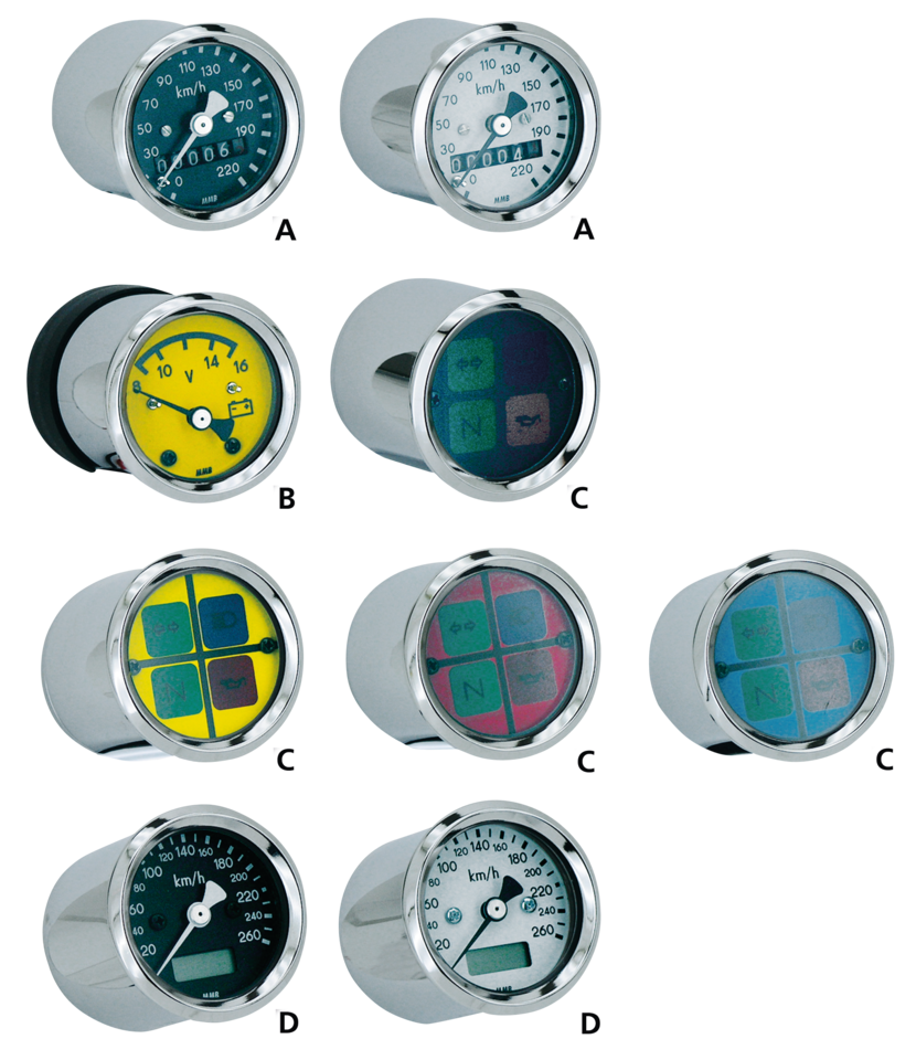 These mini gauges have a diameter as little as 48mm with a top ring of 52mm. The housing has a length of 47mm. These meters feature all chrome housing and dial illumination.
