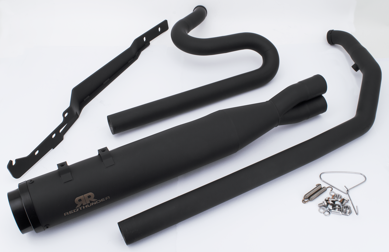 Fits Twin Cam Touring 2009-2016 and Milwaukee Eight Touring 2017 to present, long system, Complete long 2-into-1 exhaust system, Cerakote black stainless steel, Redthunder 2-1 Black FLH/T09-Up, Redthunder Exhaust