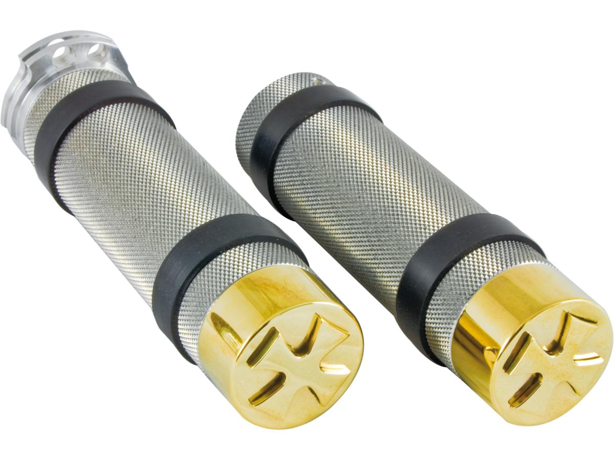 Retro Iron Cross Grips Aluminium 1″ Throttle Cables