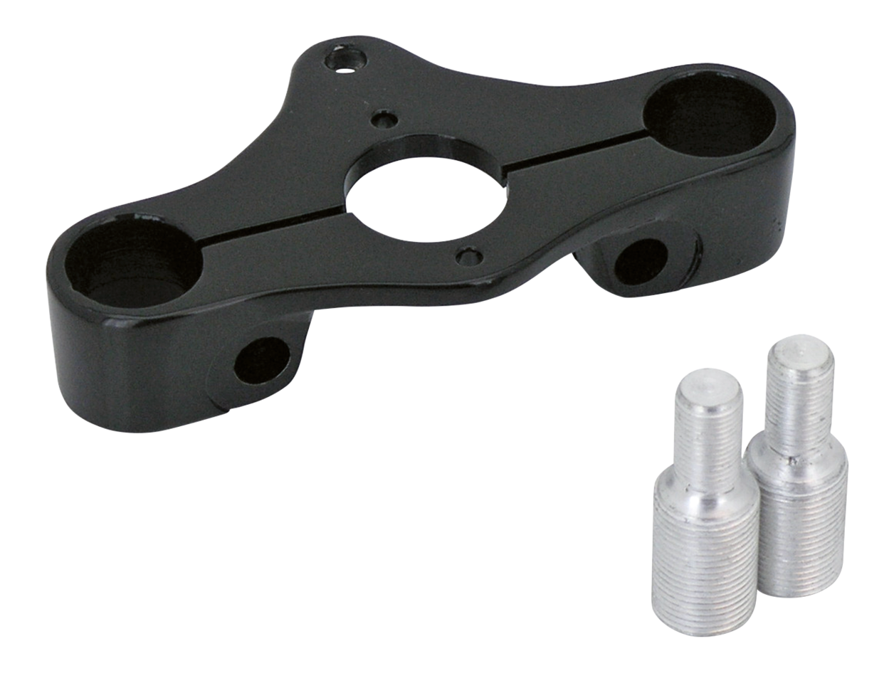 These upper triple tree clamps in combination with one of the special riser stud sets allow you to fit almost any of our risers in combination with one of our 1″ or larger diameter handlebars on the Old Style in-line Springer forks. Does not fit Old Style Offset and Custom Springer forks. Triple tree clamps are available in black or chrome, riser stud sets are available for use with 1/2″-20 UNF or 1/2″-13 UNC threaded risers.