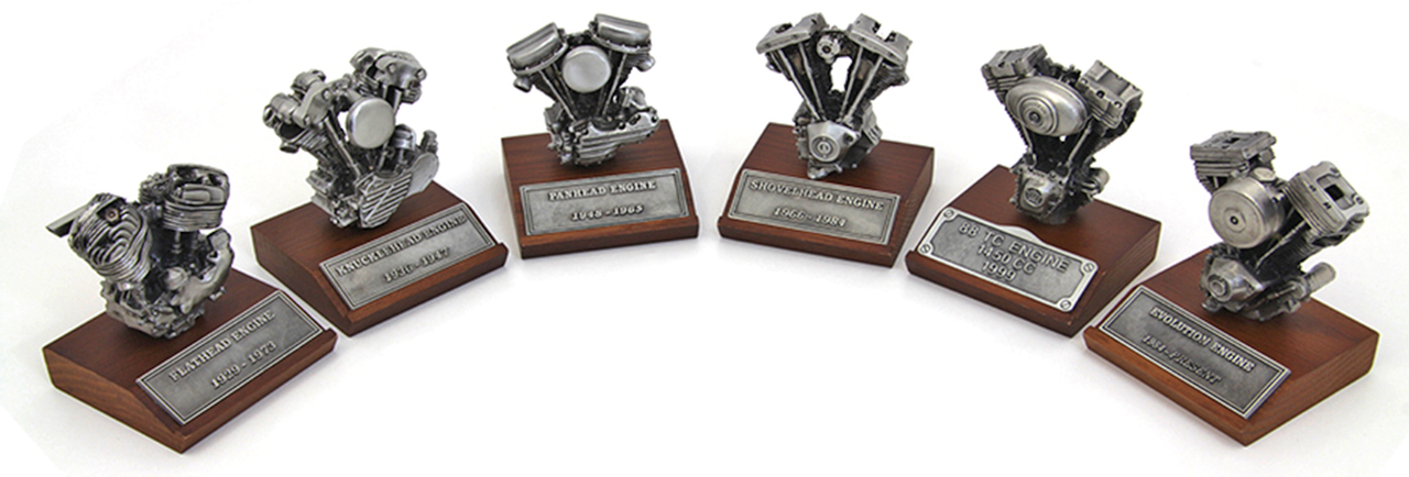 Six piece Big Twin set with Flathead, Knucklehead, Panhead, late Shovelhead, Evolution Big Twin and early Twin Cam’