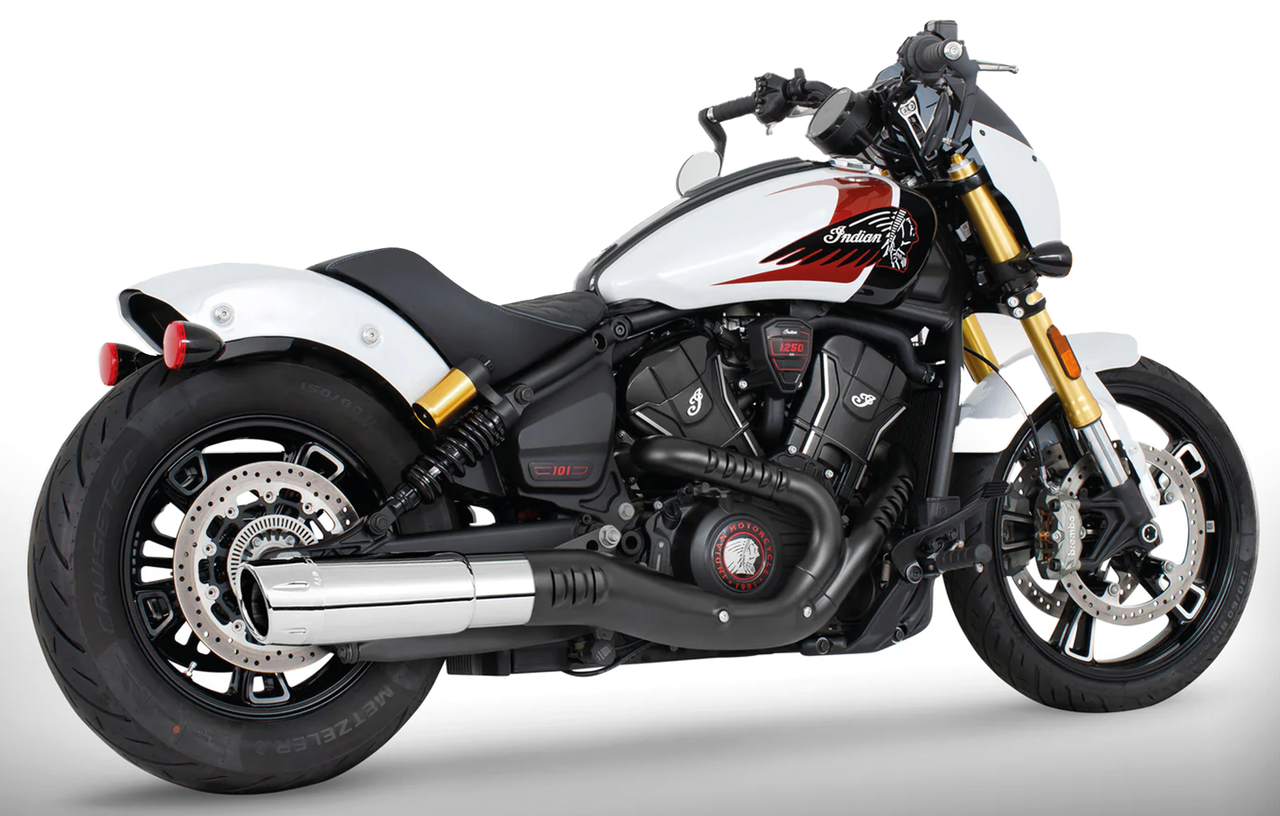 Fits all Indian Scout 2025 to present, all chrome, Slip-on muffler with Combat end cap