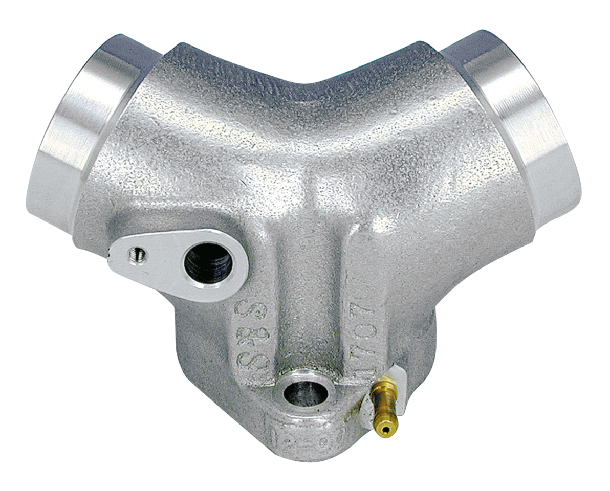 These cast aluminum manifolds are originally designed for use with S&S Super E and G carburetors but can also be used with our ZPN 232403 billet manifold adapter to fit any spigot type carburetor, such as Mikuni HSR42, QwikSilver etc. Fits Twin Cam 1999-2017.