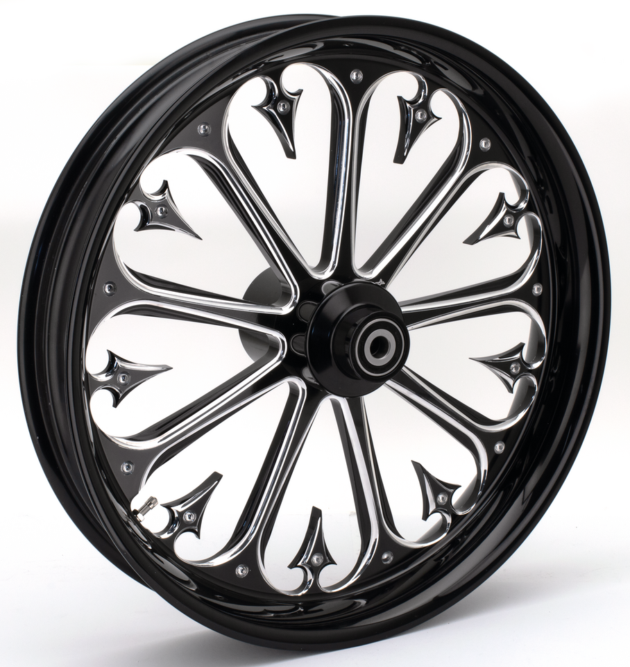 3.50×21 Stiletto design Platinum Cut front wheel, Fits: FXST Softail Standard 2000-2006, FXSTB Night Train 2000-2006, FXSTD Deuce 2000-2006 and 2000-2005 FXDWG Dyna Wide Glide