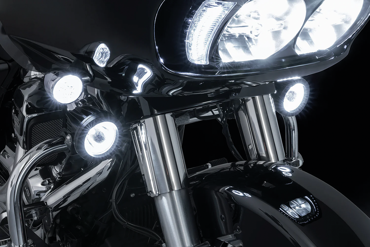 Fits 2014-2023 FLHX Street Glide, FLHXS Street Glide Special & FLHXST Street Glide ST and 2015-2023 FLTRX Road Glide, FLTRXS Road Glide Special & FLTRXST Road Glide ST, TAC-10 Light Cannon kit for engine guard mount