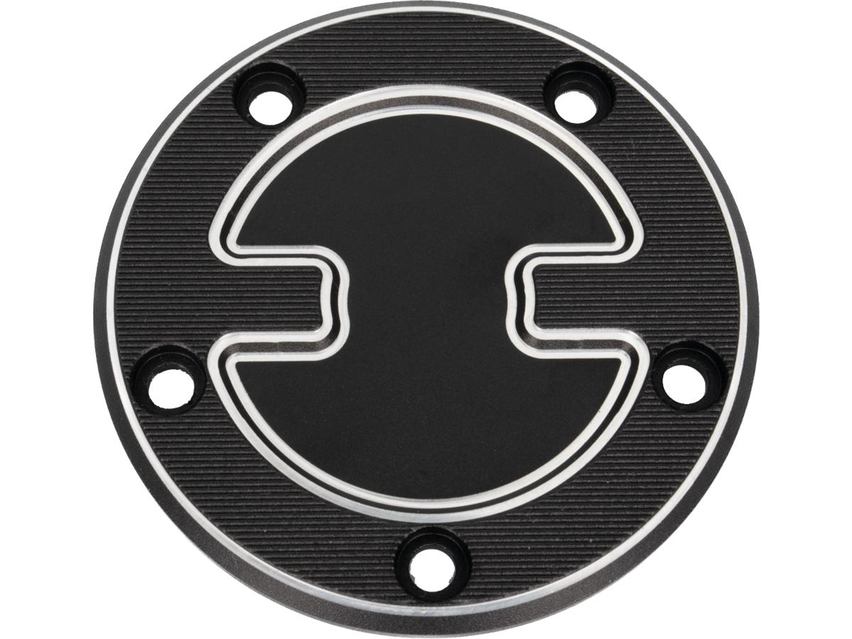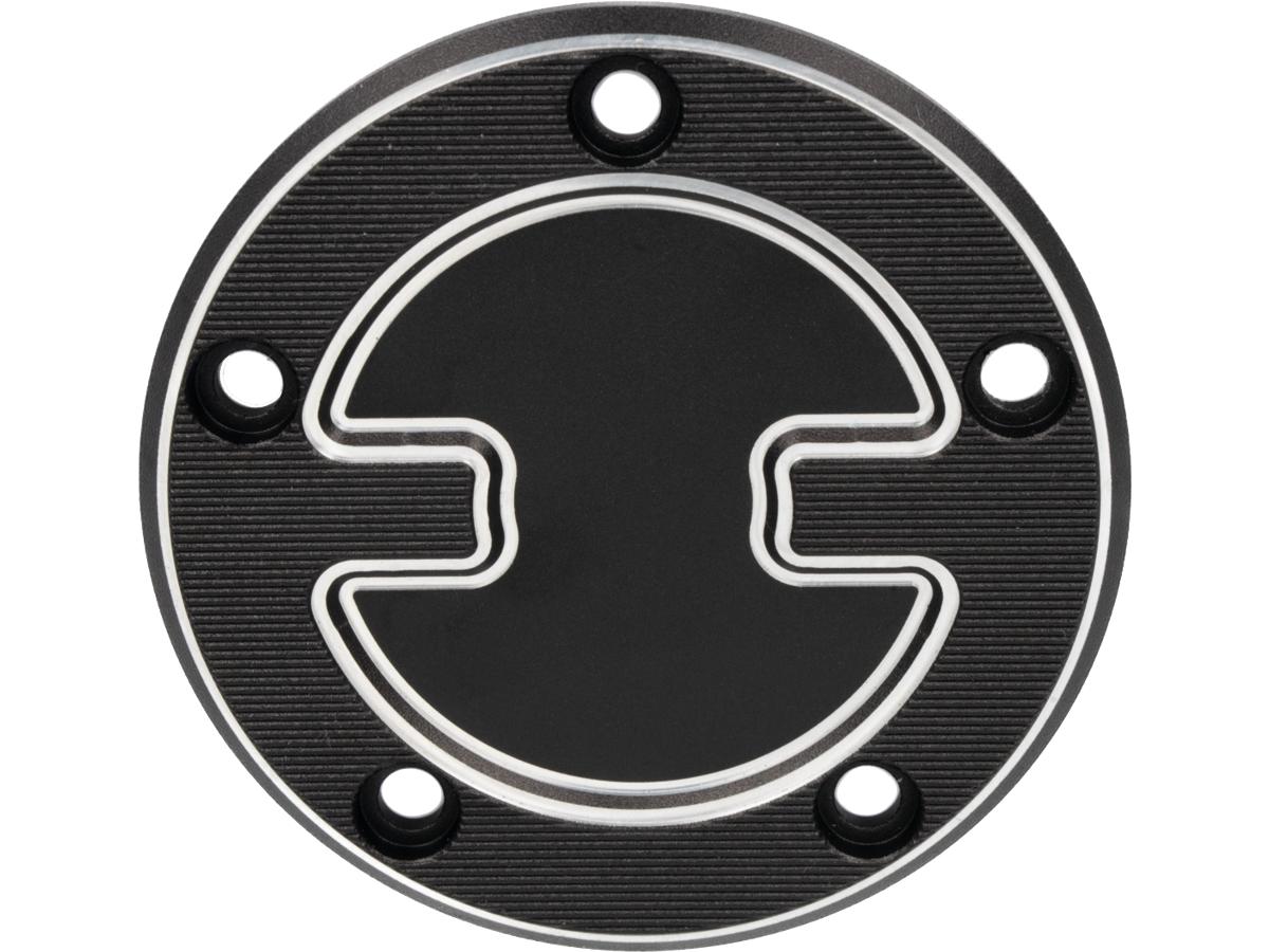 TB-S Timer Cover Black Cut Anodized, 00-17 Softail, 99-17 Dyna, 99-16 Touring, 09-16 Trike