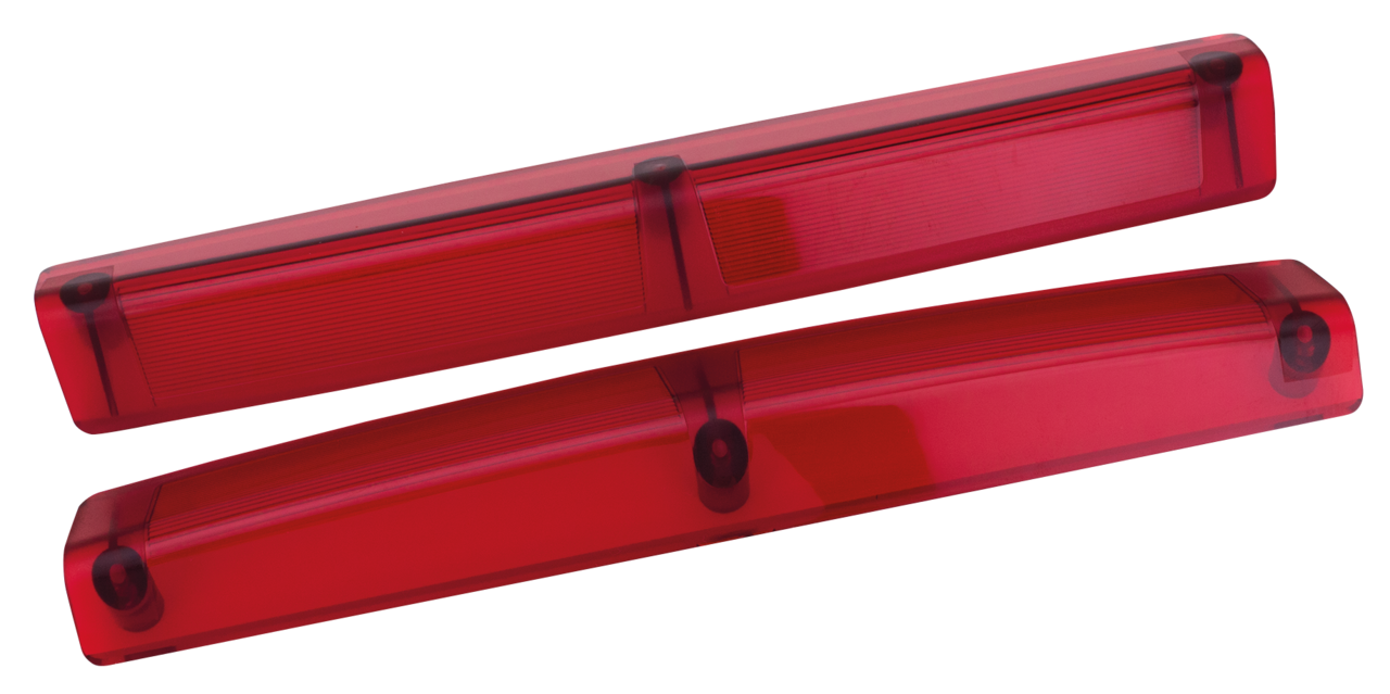 Set of two red marker light lenses (OEM 53437-79A), Tour Pak side red markerlamp lens set, V-Twin