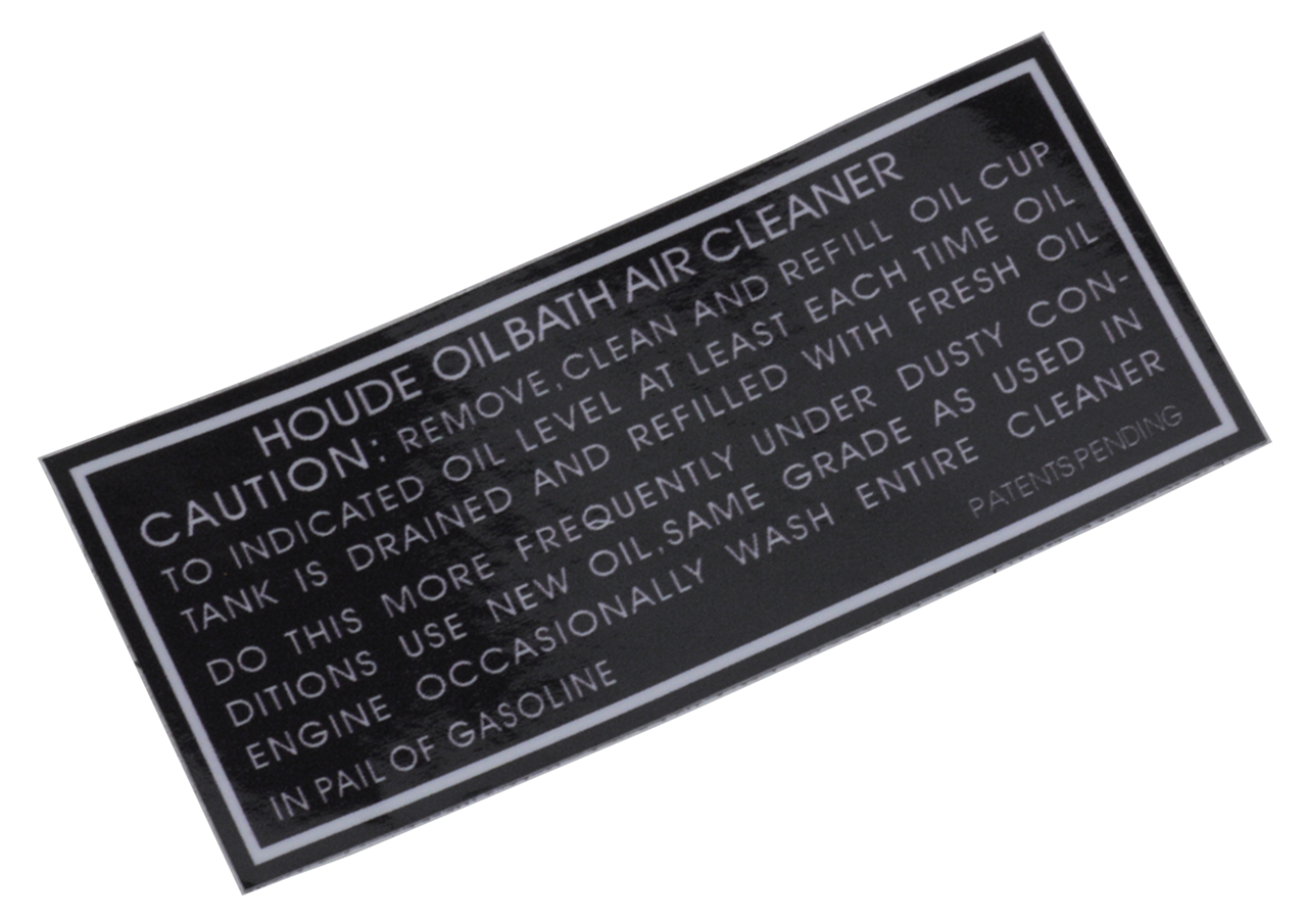 Faithfull replica of the instruction transfer as standard on WWII Army models with the round oil bath air cleaner. Measures 3 1/4″x1 1/2″ (8.3×3.8cm).