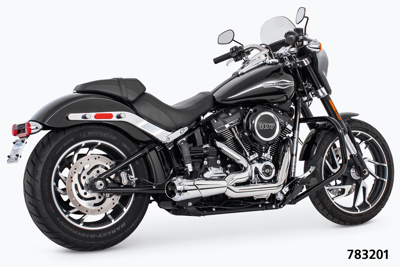 Fits 1986-2017 Softail FLS, FLSS, FLST, FLSTC, FLSTF, FLSTFB, FLSTN, FLSTS, FLSTSB, FLSTB, FLSTS, FLSTSB, FLSTSC, FXS, FXST, FXSTB, FXSTC, FXSTD, FXSTS, FXSTSB & 2007-2008 FXSTSSE, Chrome system with black muffler and chrome American Outlaw end cap, US OUTLAW LOW 2-1 COMBO CH F*ST86-17, Freedom Performance Exhaust