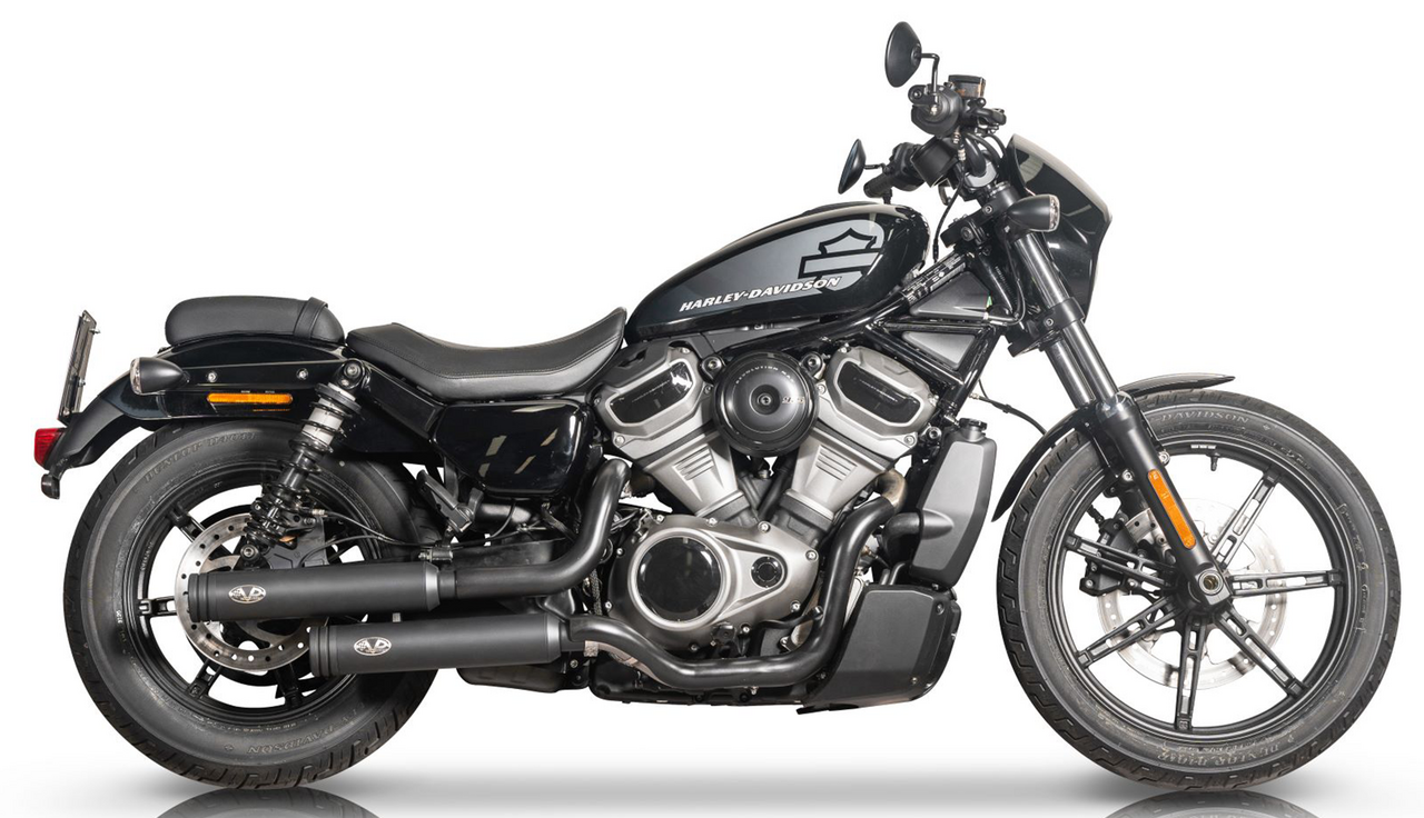 Full 2-into-2 system for the RH975 and RH975S Nightster with approval. Available in black with revolver style end caps or D-ring end caps.