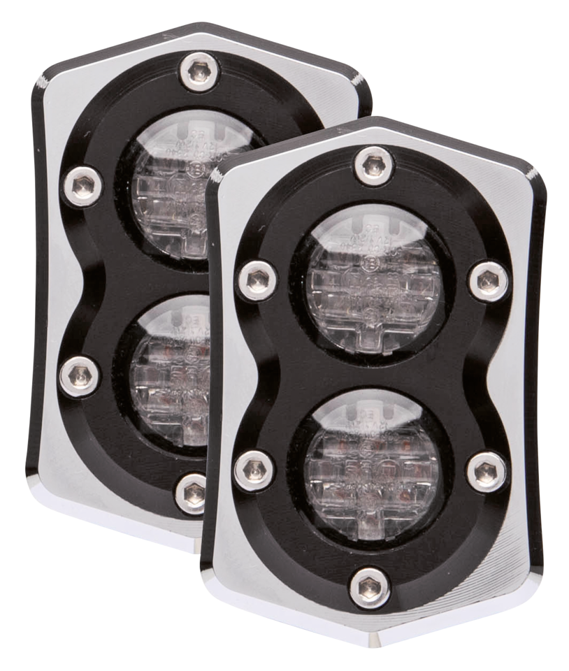 Billet aluminum license plate mount with LED light and LED turn/tail/brakelights that fit into the stock antenna mounts. Comes complete with Plug & Play connector. Fits 2014 to present Harley-Davidson Touring models.