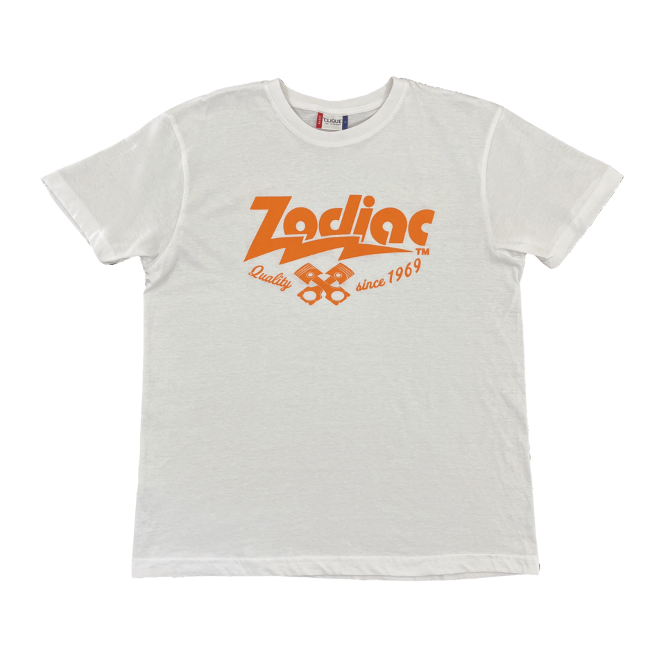 Cotton T-shirt with the classic Zodiac and Crossed Piston logo.