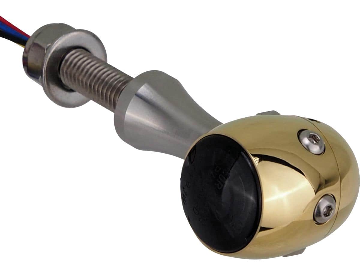 Hells Kitchen Choppers, Retro LED Turn Signal/Taillight/Brake Light V2A Polished stem Brass Polished Brass Polished Smoke, Retro LED Turn Signal/Taillight/Brake Light V2A Polished stem Brass Polished Brass Polished Smoke