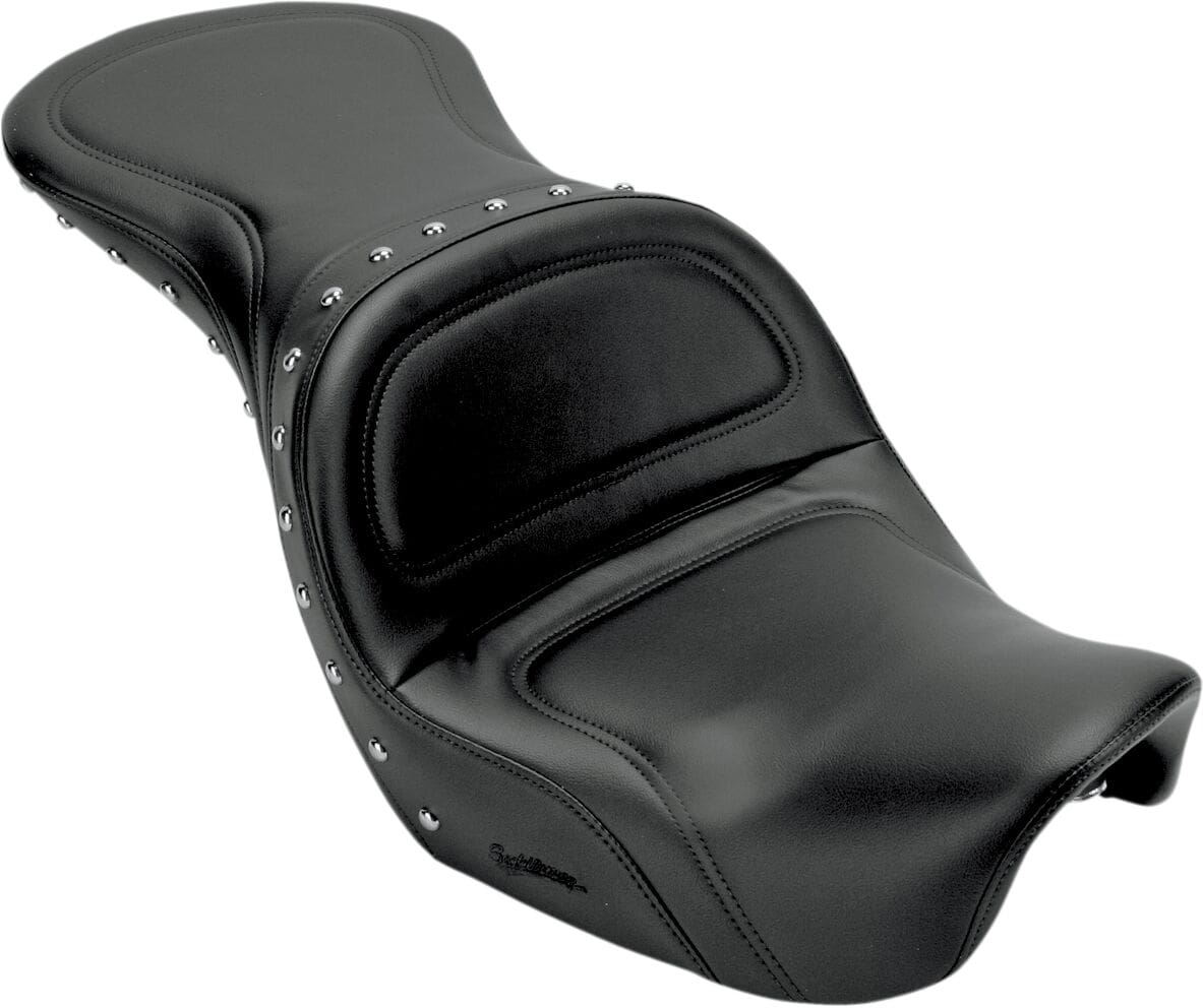 - Designed and contoured for two-up touring comfort; match all studded saddlebags and luggage
